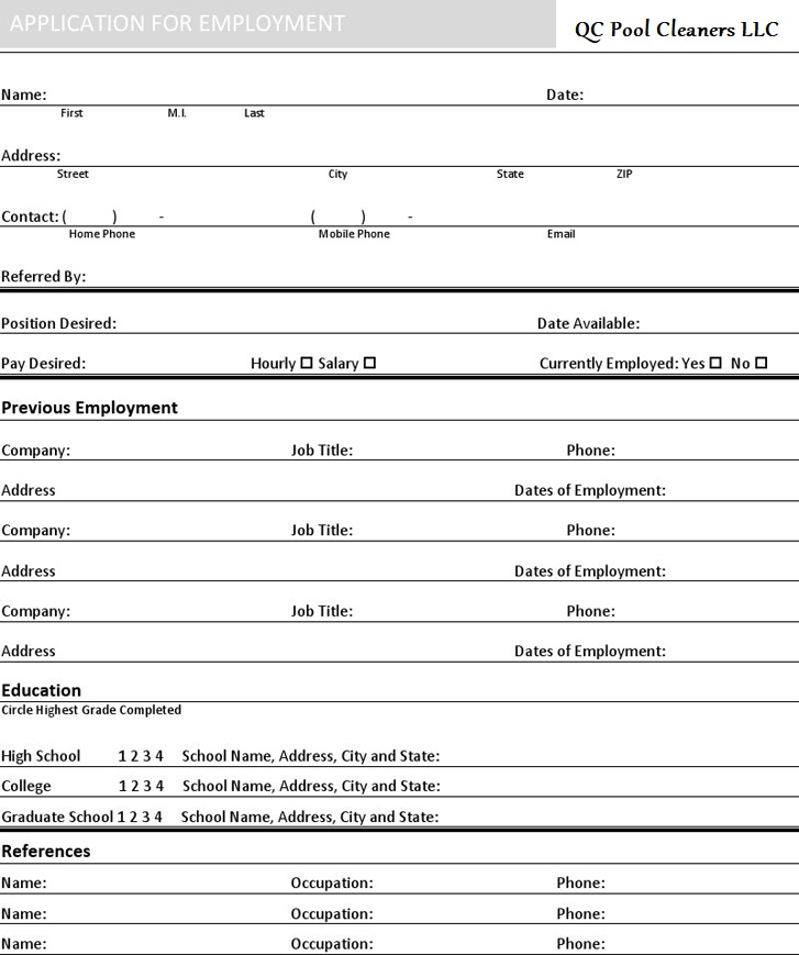 Please complete the form below and email to qcpoolcleaners.com
